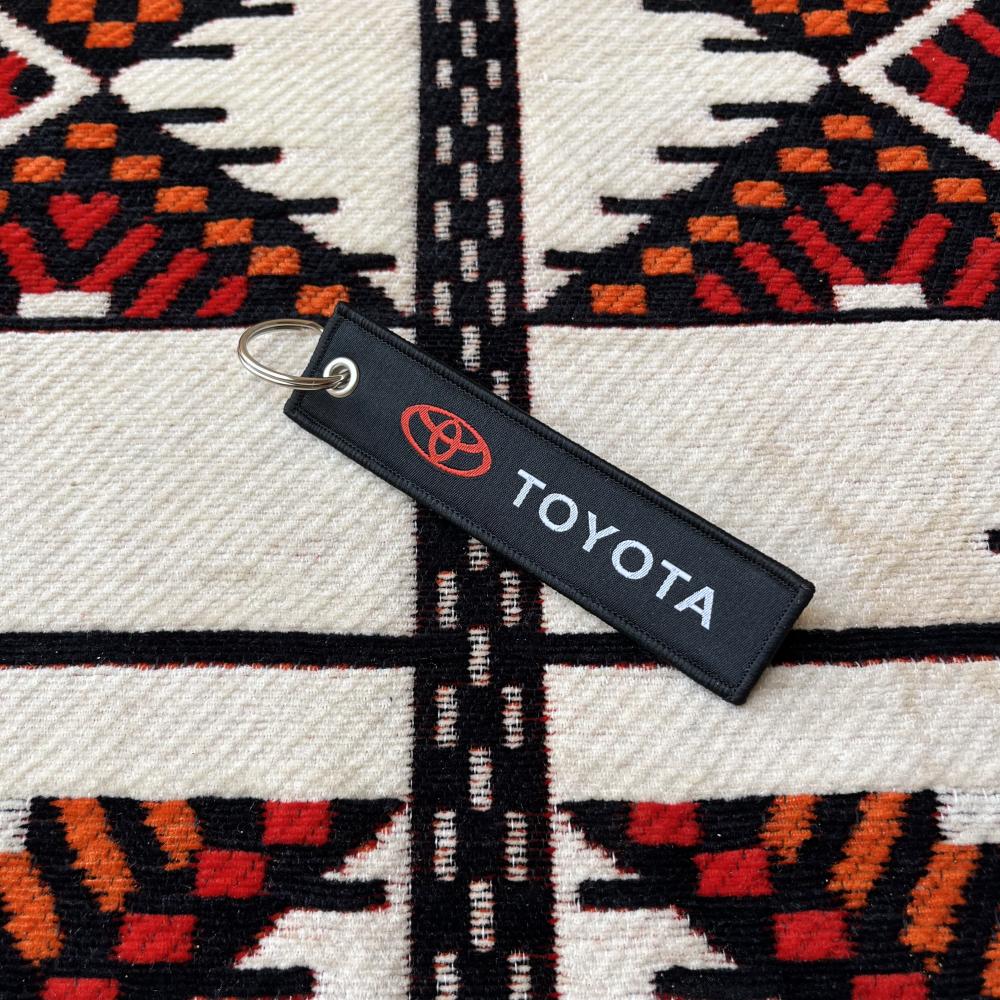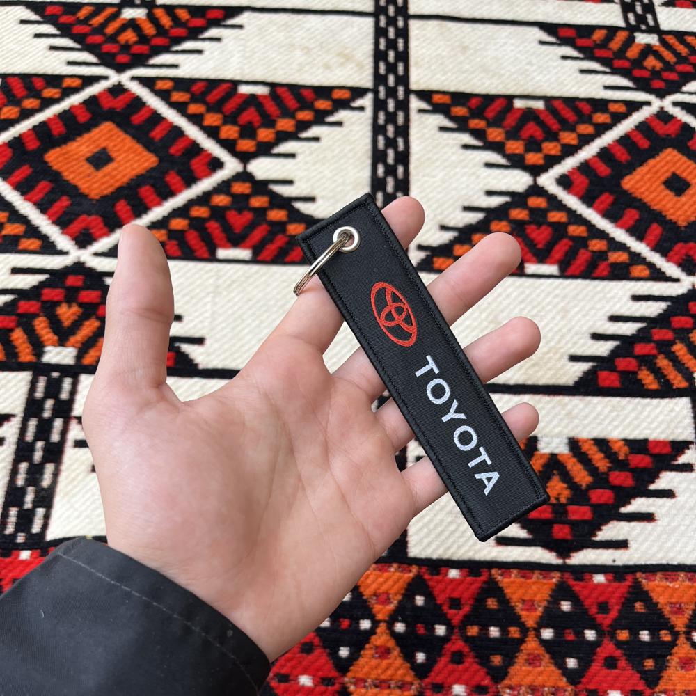 ميداليه مفتاح قماش مميزة وبشكل جميل، ذو خامه ناعمه الملمس عالية الجودة وغير قابلة للقطع، تأتي بشعار لشركة تويوتا، كما تأتي بحلقة معدنية لتعليق المفاتيح